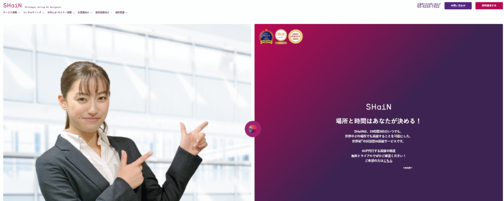 | SHaiN(シャイン) | 対話型 | 回答内容に応じて深掘り質問を自動生成し、思考の深さと一貫性を評価。 | 論理構成/一貫性/思考力 | 約30〜70分 |