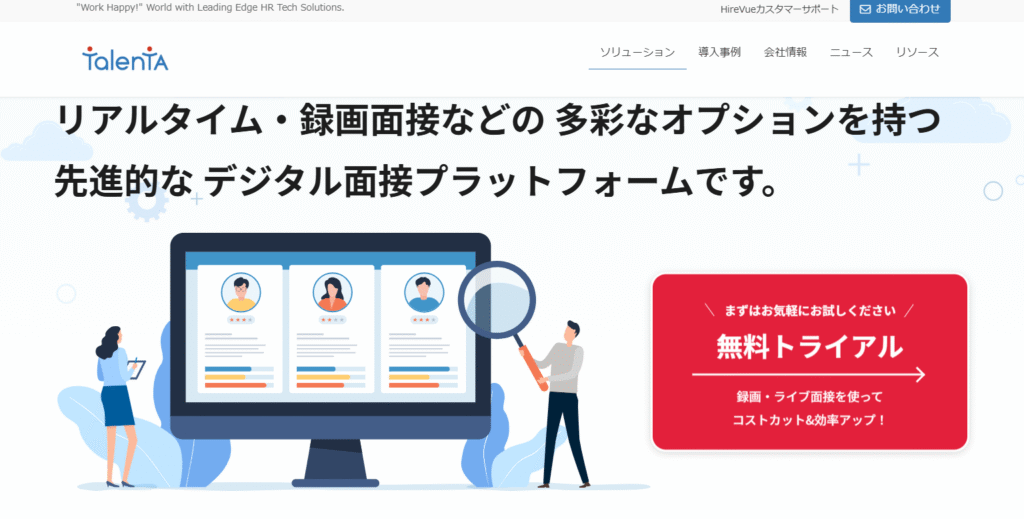 世界中で導入実績No.1のシステムで、録画型・対話型ともに対応しています。応募者の表情、声のトーン、使用語彙などをAIが多角的に分析し、その企業で既に活躍している「ハイパフォーマー」のデータと照合。「入社後に活躍できる可能性(活躍予測モデル)」をスコア化するのが最大の特徴です。