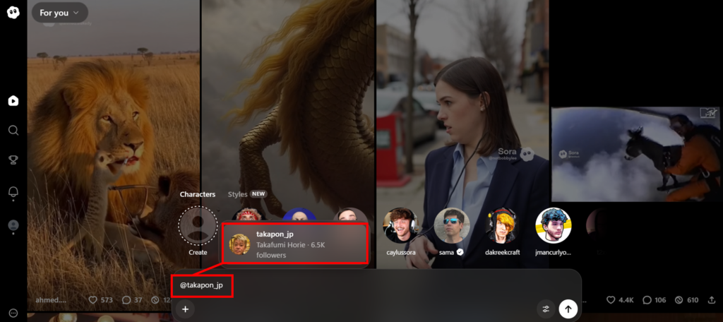 OpenAIが2025年後半にリリースした「Sora2」には、特定の人物の特徴を学習させた「カメオ(Cameo)」機能が搭載されています。ここに、ホリエモンAI学校が正式に堀江貴文氏のデータを登録し、ID「takapon_jp」として一般公開したのです。