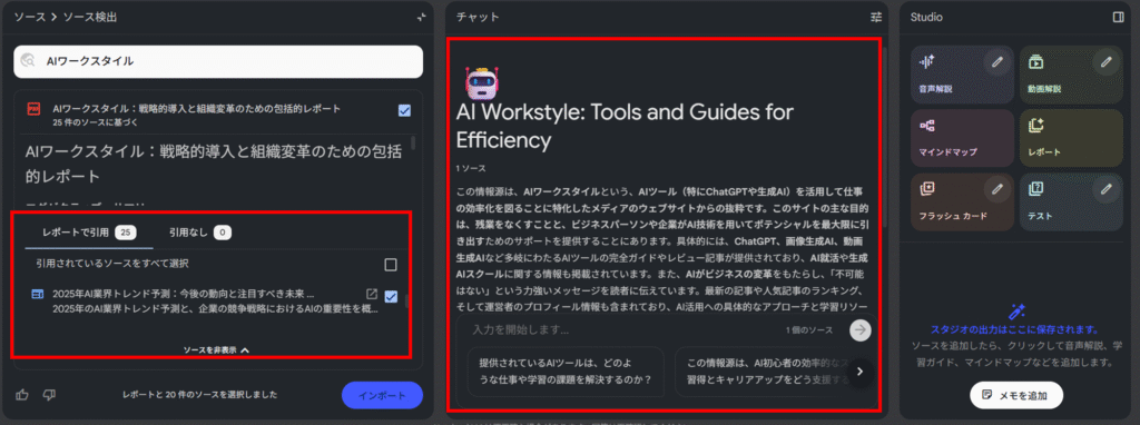 これらの追加により、NotebookLMは「PDFとテキスト専用」のツールから、あらゆるデジタルドキュメントを扱える「統合ナレッジベース」へと進化しました。