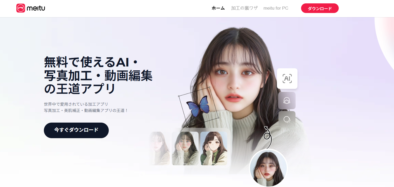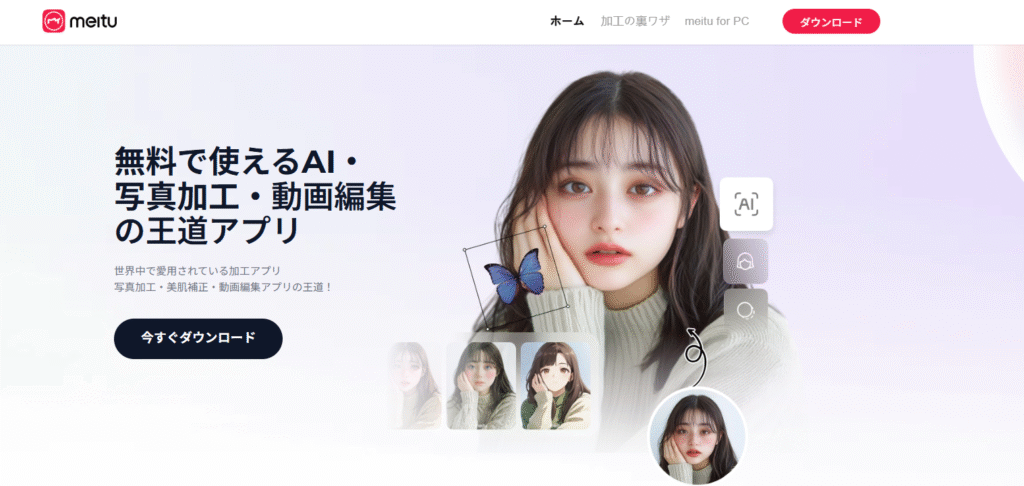 AI加工ブームの火付け役とも言えるのが「Meitu(メイツ)」です。こちらは、SNSで流行している幻想的なAIイラスト風の雪加工を手軽に試したい初心者に最もおすすめのアプリです。