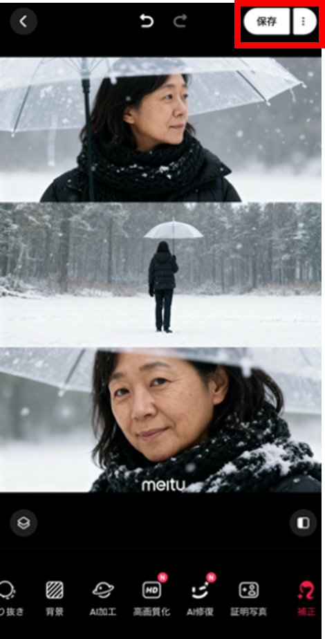 4. 【徹底解説】Meitu(メイツ)を使った雪景色のAI雪加工の作り方