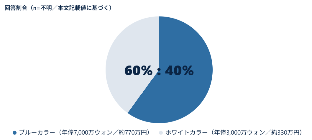 韓国のZ世代を対象にした調査では、「年俸7,000万ウォン(約770万円)の交代勤務ブルーカラー」と「年俸3,000万ウォン(約330万円)でワークライフバランスの良いホワイトカラー」のどちらを選ぶかという問いに対し、約6割が前者を選んだというデータもあります。